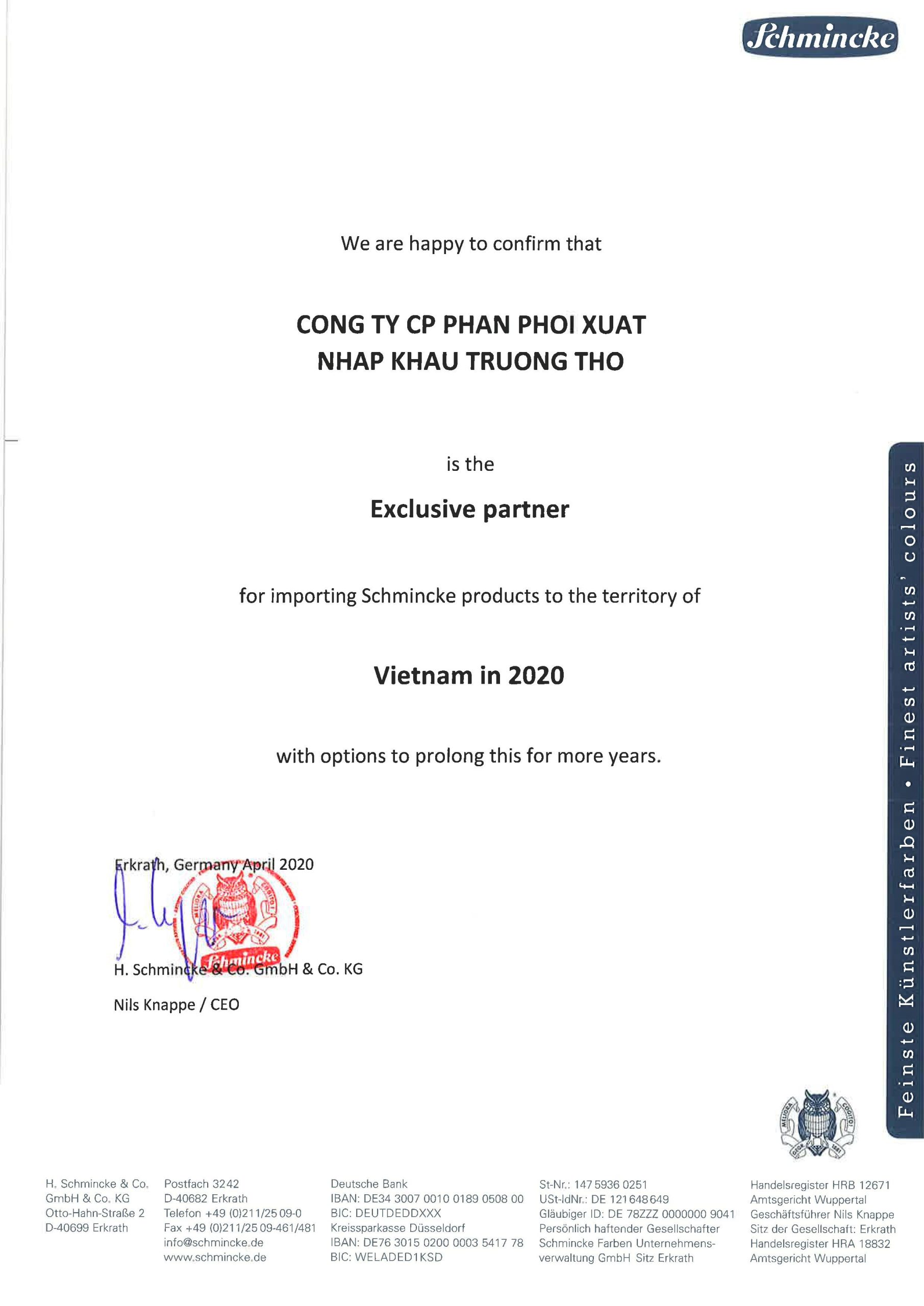 >> Tra cứu Hệ thống phân phối Schmincke trên toàn Thế giới